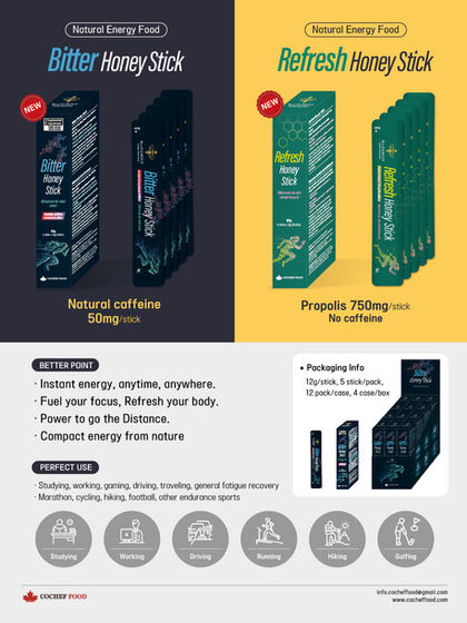 CoChef Food Inc. believes that everyone deserves to eat well and live healthily. We should take nutritious food into our daily lives. That is why CoChef focuses on natural and pure healthy food from Canada, with an invention of the honey stick, mostly beloved sweetener combined with superfood and Canadian berries.
